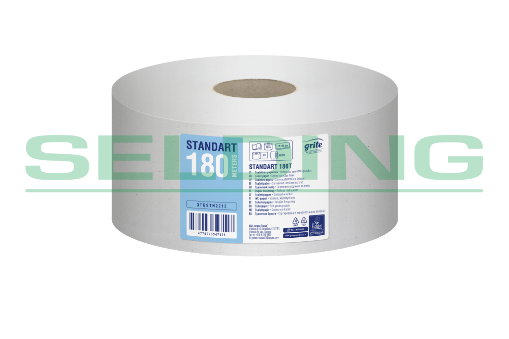 Iepakojums: 8×7= 56gab. Krāsa: pelēka (otrreizēja šķiedra), kārtas: 3, iespiedums: ir, platums: 9cm, lokšņu skaits rullī: 135gab. ЕU Ecolabel.