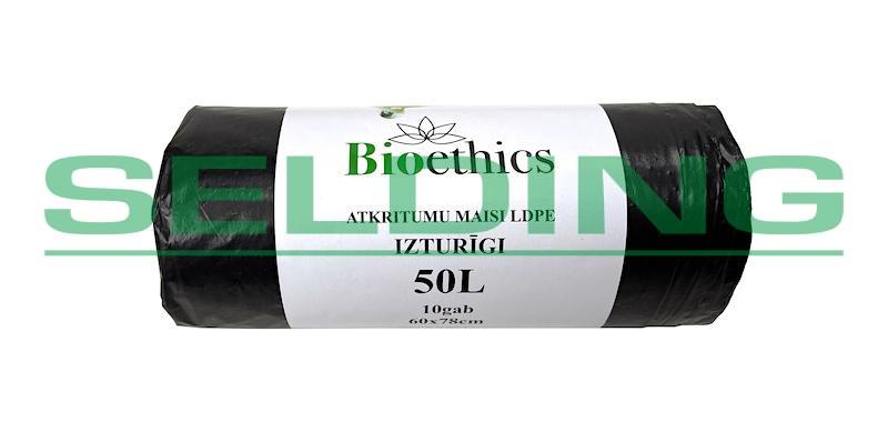 Atkritumu maisi BIOETHICS LDPE, melni, 50L/10gab/30mkr (0,26kg) (20)