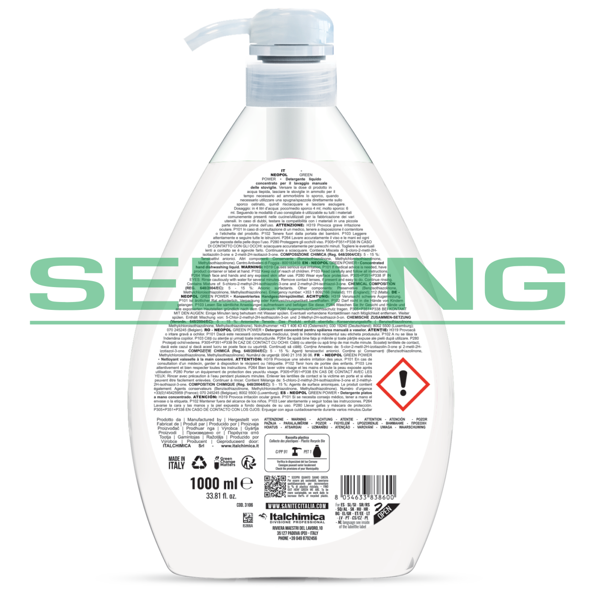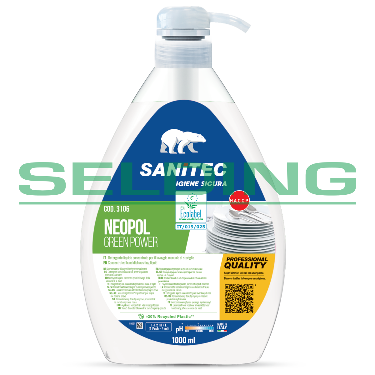 Ekoloģiskais trauku mazgāšanas līdzeklis Sanitec NEOPOL Green Power, 1L (6)