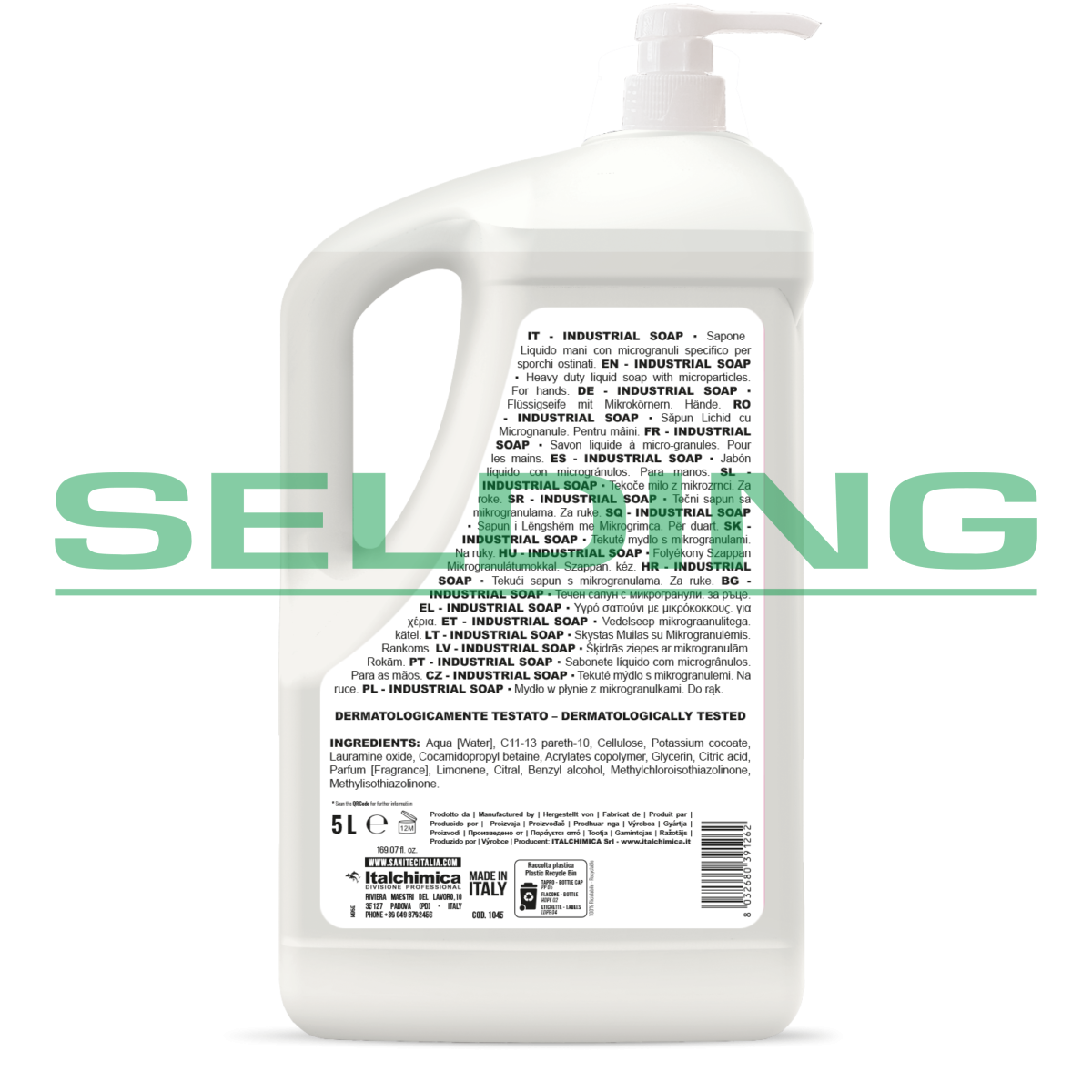 Iepakojums: 5L. Aromāts: apelsīnu. Šķidrās ziepes ar mikrodaļiņām. Noņem rūpnieciskus netīrumus: eļļu, līmi, rūsu, darvu, tinti, taukus u.c. Īpaši piemērotas lietošanai auto servisos, rūpniecības nozarēs un būvniecībā. Atbilst H.A.C.C.P. (apstiprināts izmantošanai PĀRTIKAS jomā).