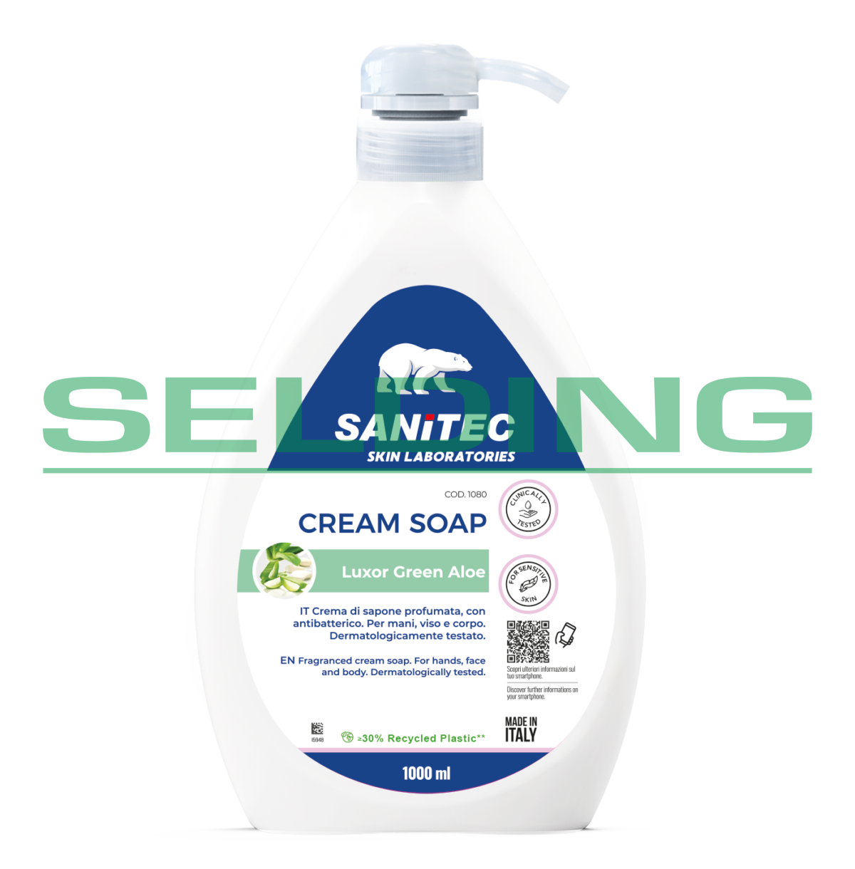 Krēmziepes ar antibakteriālu iedarbību Sanitec CREAM SOAP Luxor Green Aloe, 1L (6)