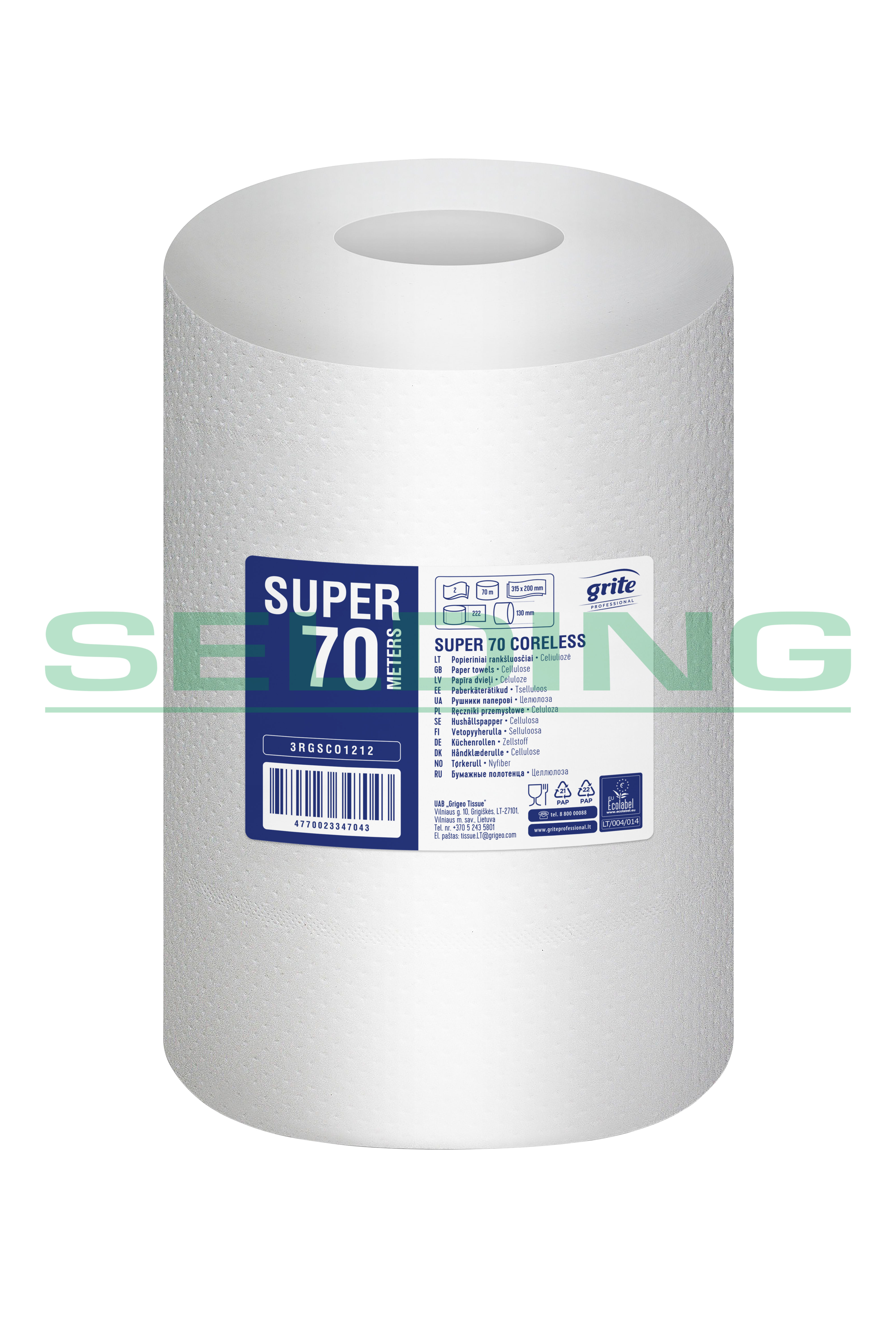 Roku dvieļi Grite Super 70 Coreless, balti, 2-kārt., 12gab, Ø12.7