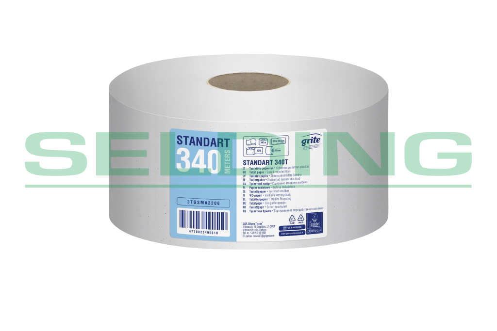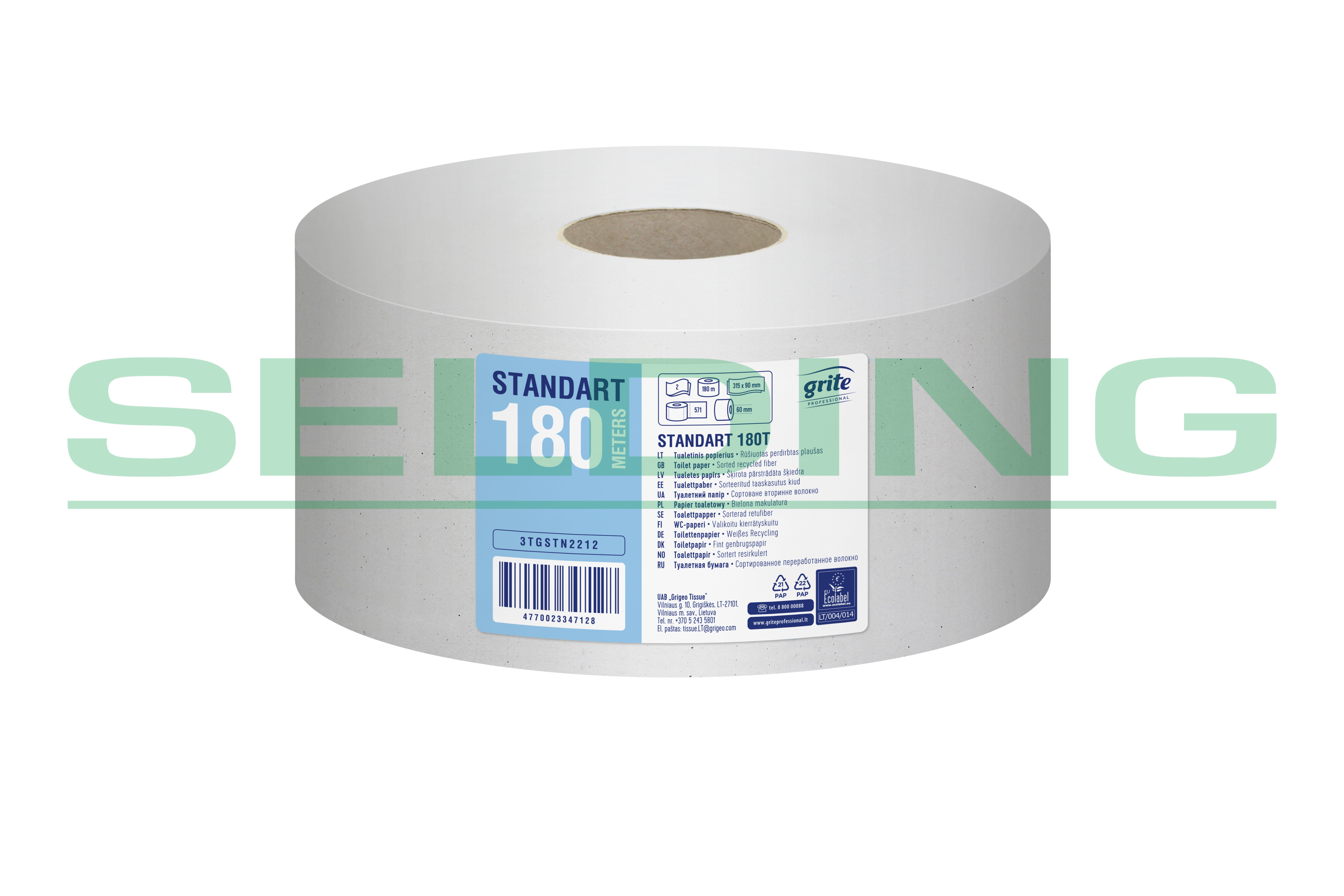 Tualetes papīrs GRITE Standart 180, balināts, 2-kārt., 12gab, Ø18