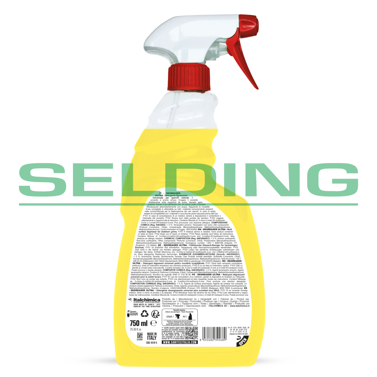 Iepakojums: 750ml, pH 10,5. Gatavs lietošanai. Ļoti koncentrēts, aromatizēts un sārmains tīrīšanas līdzeklis. Efektīvs pret noturīgiem netīrumiem. Efektīvi notīra taukus, eļļu un piedegušas atliekas. Ideāli piemērots: žalūzijām, radiatoriem, dārza mēbelēm, darba virsmām, pārsegiem, griliem, krāsnīm un katliem pat sacietējušu vai piedegušu tauku gadījumā, apģērbiem ar noturīgiem traipiem. Lietošana: Izsmidziniet līdzekli uz apstrādājamās virsmas. Ļaujiet iedarboties ne ilgāk par 5 minūtēm un noskalojiet ar mitru drānu. NELIETOJIET uz neanodēta alumīnija, dabiskā koka un caurspīdīgiem plastmasas materiāliem (polikarbonātiem, piemēram, ķiveres vizieriem, dušas kabīnēm u.c.). Vienmēr pārbaudiet, vai izstrādājums ir piemērots lietošanas mērķim, veicot izmēģinājuma apstrādi neredzamā vietā. Atbilst H.A.C.C.P. (apstiprināts izmantošanai PĀRTIKAS jomā).