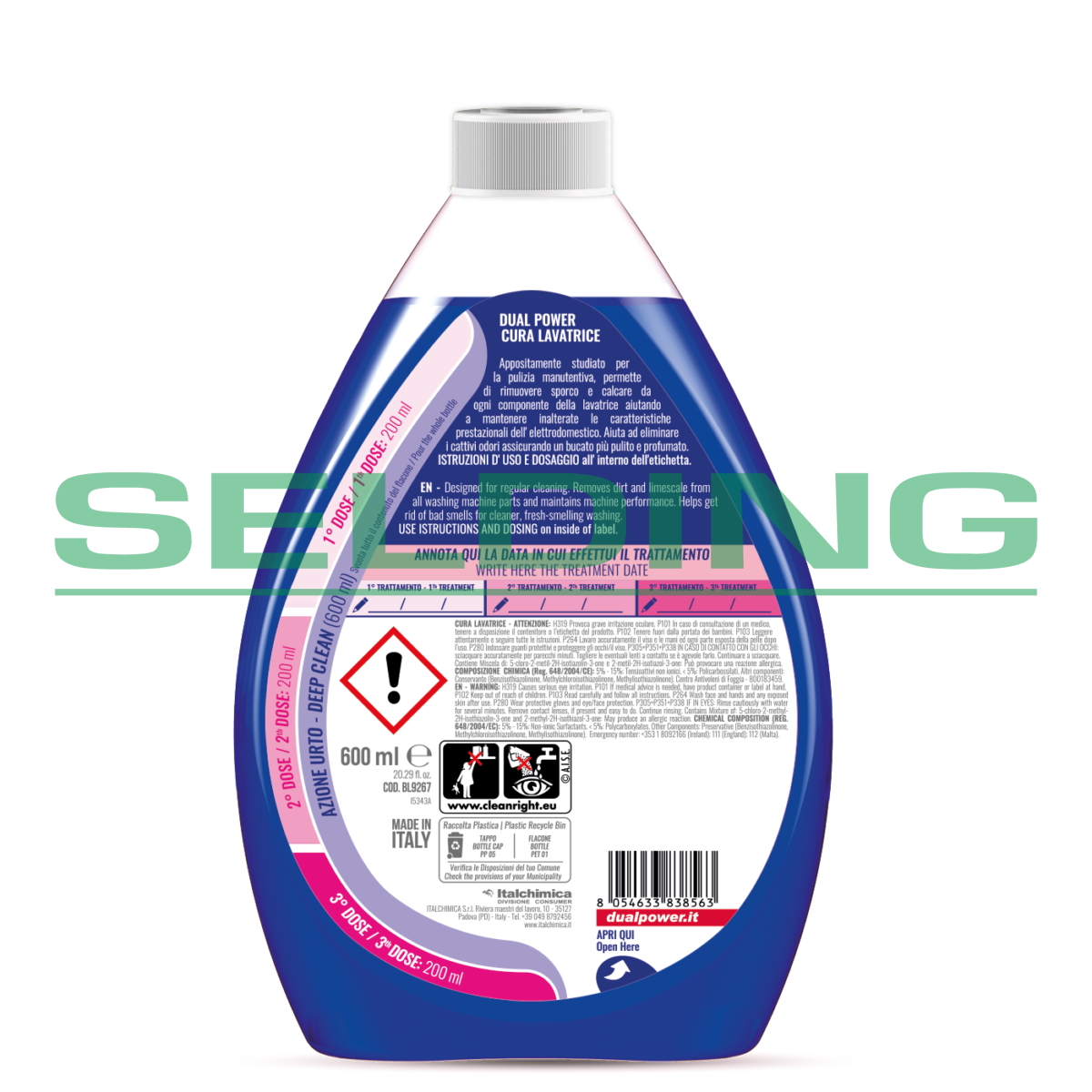 Veļas mašīnas tīrīšanas līdzeklis Dual Power PROFESSIONAL Cura Lavatrice, 600ml (6)