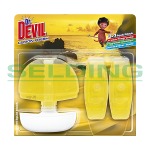 Novietojiet bloku uz pakaramā (vāks uz leju) un nospiediet, līdz atskan klikšķis. Novietojiet tualetes poda iekšpusē, kur var noskalot ar ūdeni.