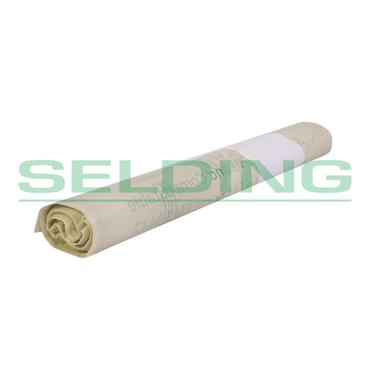 Толщина: 18мкр, размеры: 48×60см, цвет: зелёный. В рулоне: 15 штук, в коробке: 50 рулонов. Полностью биоразлагаемые и компостируемые мусорные пакеты (на основе кукурузного крахмала).