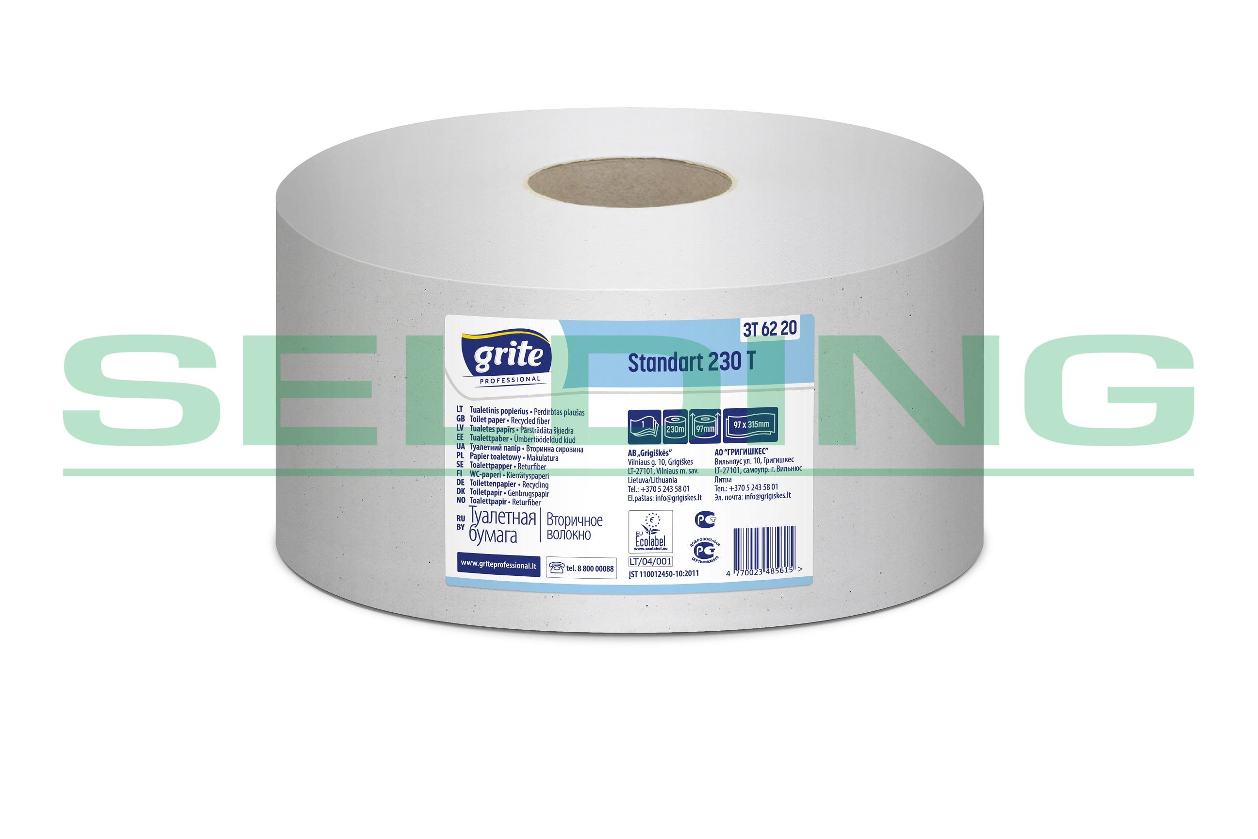 Туалетная бумага GRITE Standart 230, отбеленная, 1-слойнaя, 12шт, Ø17.5
